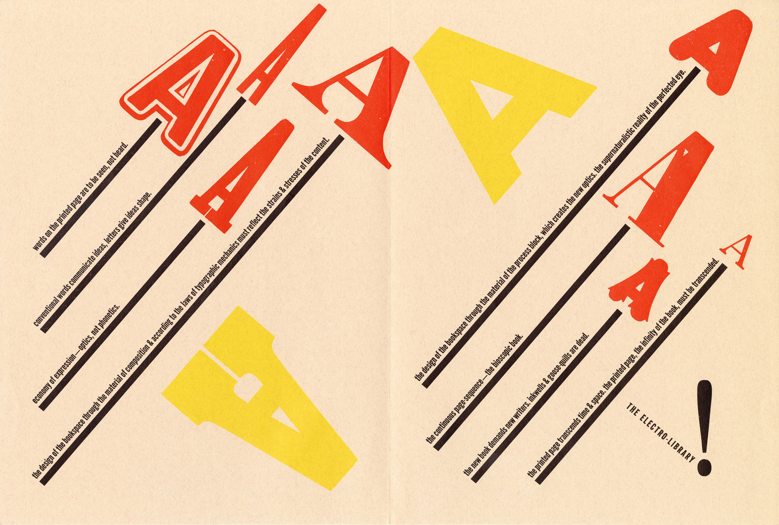 Russian artist and designer El Lissitzky (1890–1941) left a profound mark on markmaking. For Lissitzky, letters are not letters and forms are not forms — they are elements of “pure feeling”, expressions of what we cannot see and cannot know. Above is a page designed by Canadian designer Glenn Goluska (in the style of Lissitzky) from his 1983 book about El Lissitsky, one of the founders of Suprematism and abstract art.